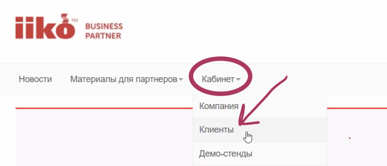 3 - в разделе Кабинет в выпадающем списке выбираем раздел Клиенты