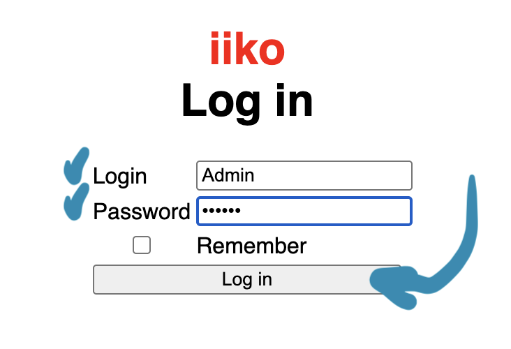7 - ΠΠ²ΠΎΠ΄ΠΈΠΌ Π°Π΄ΠΌΠΈΠ½ΡΠΊΠΈΠΉ Π»ΠΎΠ³ΠΈΠ½ ΠΈ ΠΏΠ°ΡΠΎΠ»Ρ ΠΎΡ iikoOffice ΡΡΠ°Π»ΠΎΠ½Π½ΠΎΠΉ ΠΎΡΠ³Π°Π½ΠΈΠ·Π°ΡΠΈΠΈ, Π½Π°ΠΆΠΈΠΌΠ°Π΅ΠΌ Log in