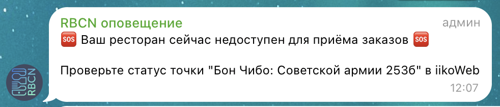 ❌ RBCN отправляет сообщение 🆘 Ваш ресторан сейчас недоступен для приёма заказов 🆘