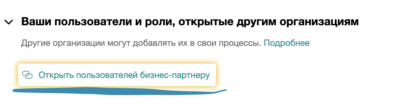 2.2. Вверху страницы нажмите Открыть пользователей бизнес-партнеру