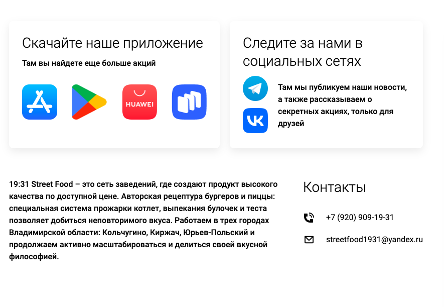• Социальные сети, чтобы ваши клиенты могли подписаться на вас.