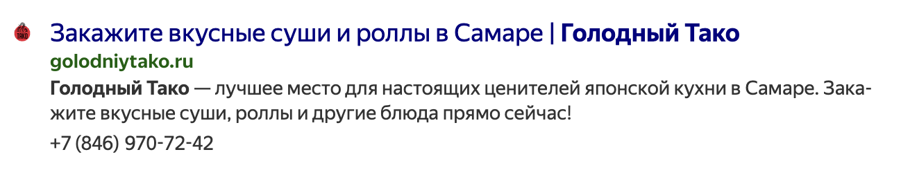 • Постарайтесь включить в заголовок призыв к действию. Например, "Закажите суши с доставкой уже сегодня!" Это мотивирует пользователей перейти на сайт.