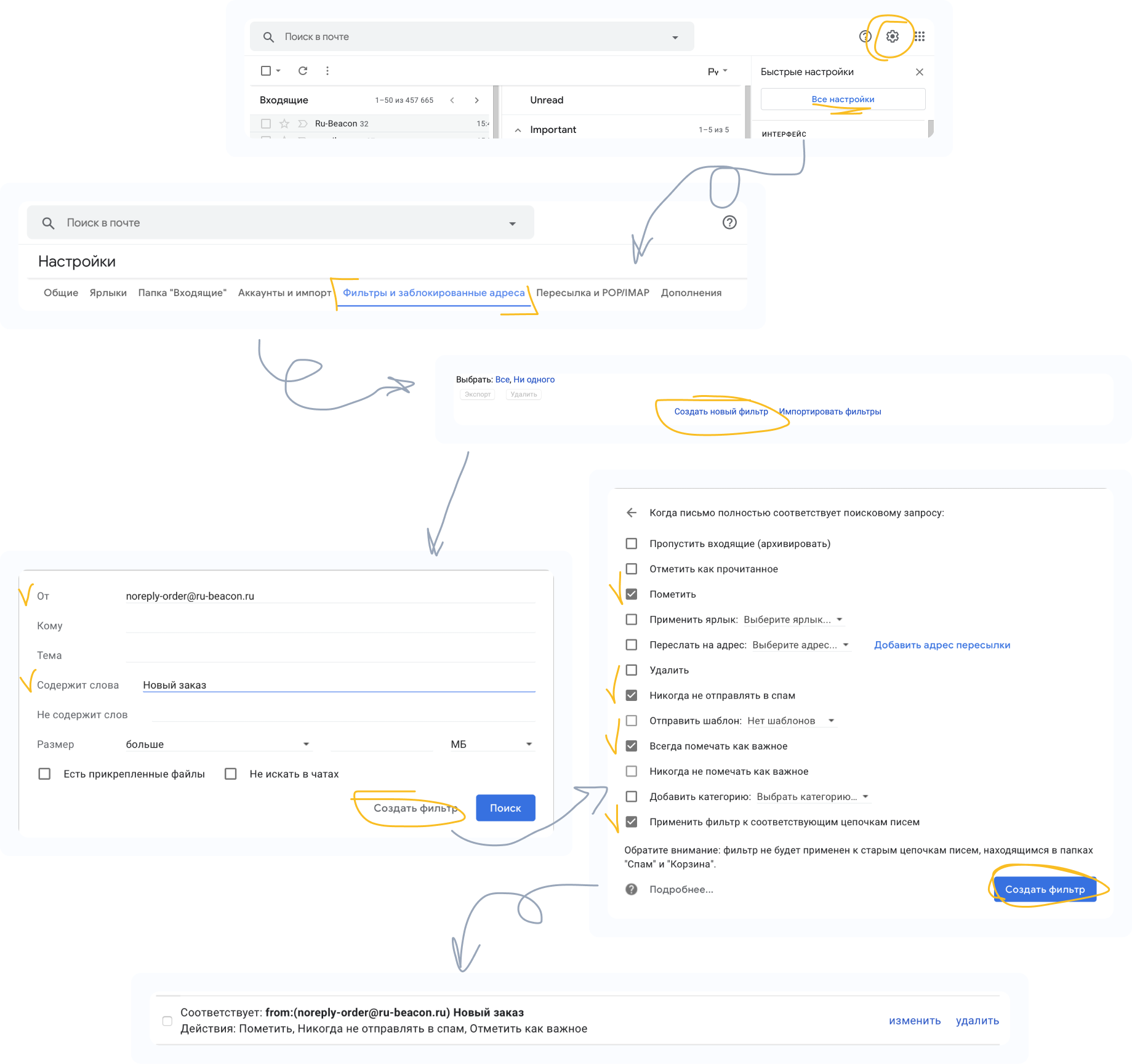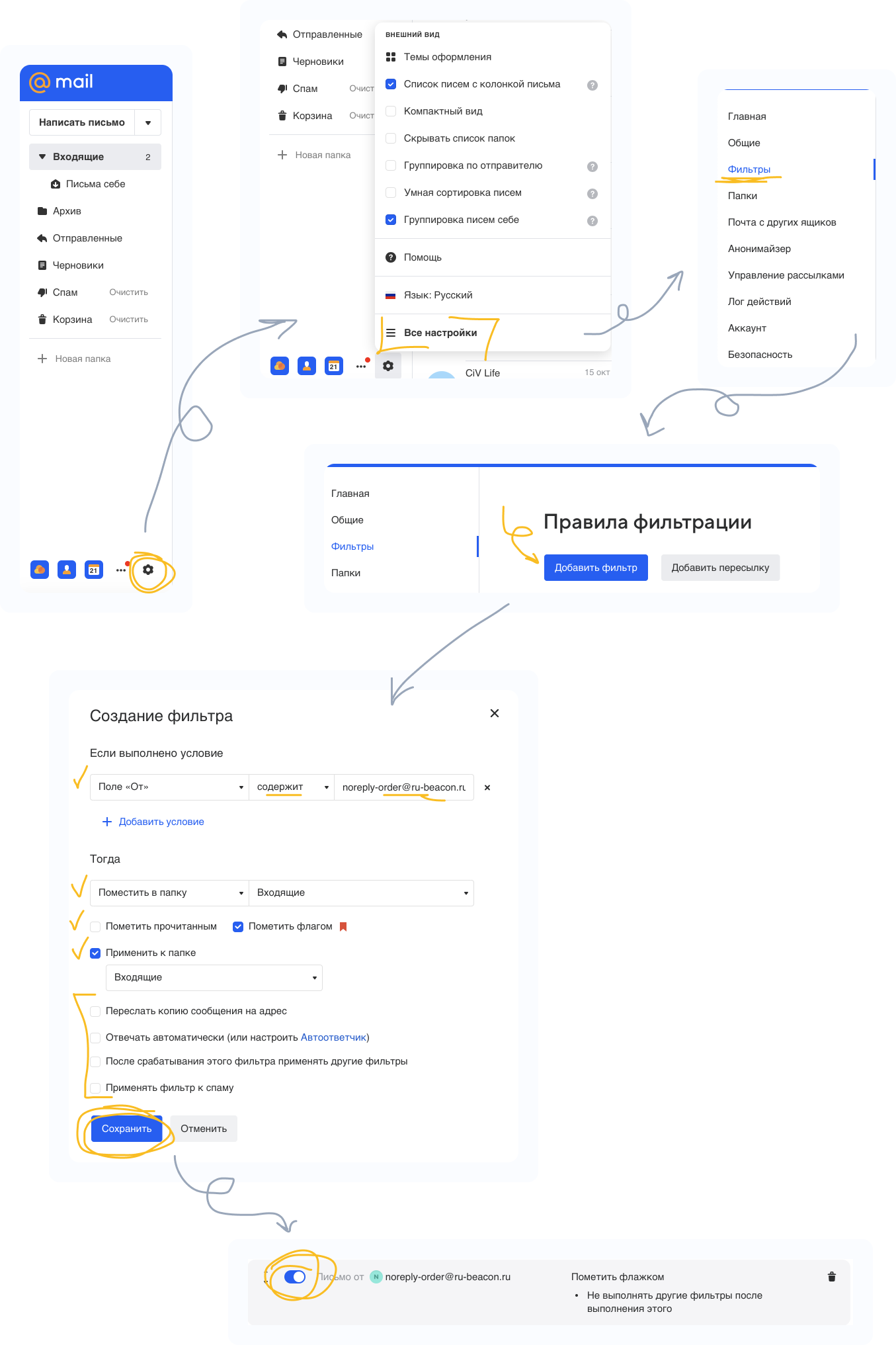 6 - Вписываем почту, с которой приходят заказы: noreply-order@ru-beacon.ru